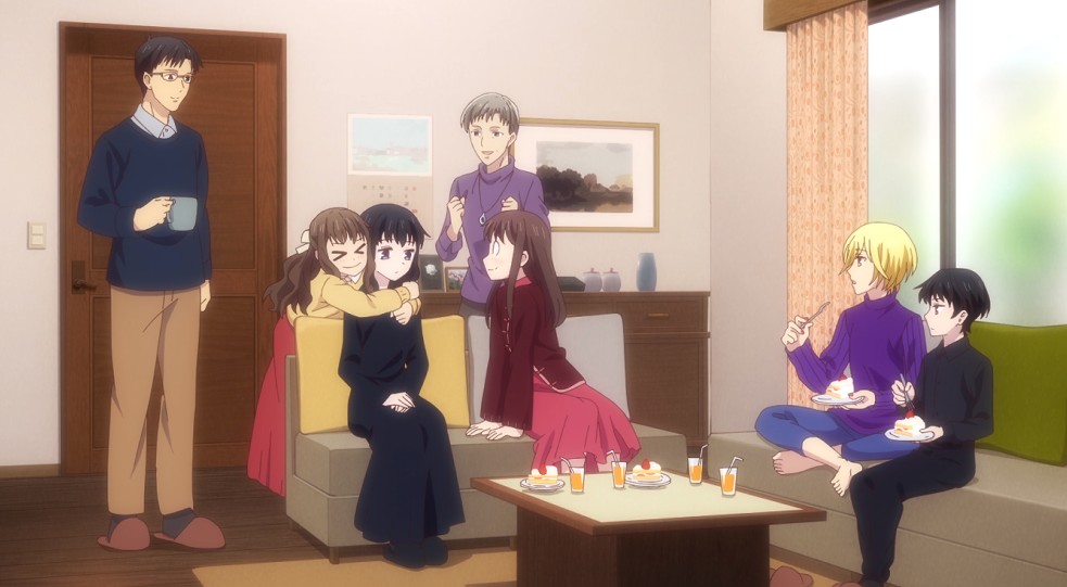 La transformation du chat a eu des répercussions, sur Kagura qui est partie sans prévenir, sur Yuki refusant de se laisser aller aux pensées odieuses. Haru, Kagura et Ayamé se retrouvent chez Shiguré, très vite rejoins par Hatori, Momiji et Kisa. Une façon prévenante de venir prendre soin du trio après une longue nuit tumultueuse. (Ainsi qu’un ressort scénaristique classique, annonçant une fin de saison et donc un au revoir à tous les personnages)
